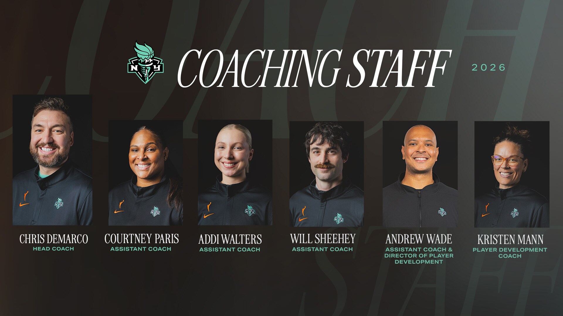 The New York Liberty have finalized their coaching staff for the 2026 season, the team announced today. Led by four-time NBA Champion Chris DeMarco, the Liberty’s coaching staff features a group of experienced, innovative, and player development‑focused leaders whose backgrounds span the WNBA, NBA, G League, FIBA, and international leagues, aligned with the organization’s commitment to excellence and innovation.